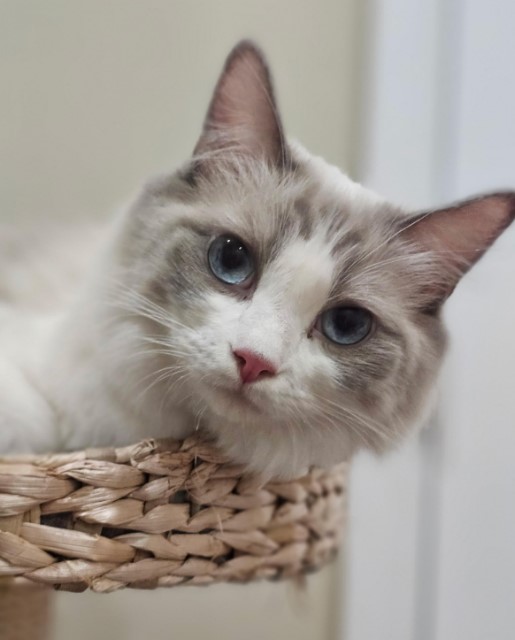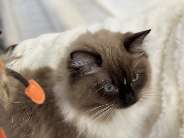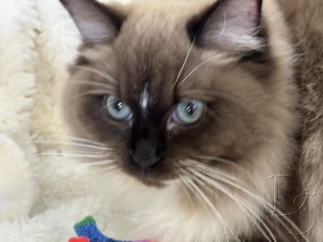 Violet is a Blue Lynx Point Ragdoll. She has the energy of her mother Amy and loves to play and cuddle. Violet is super loyal and loves attention. She also loves her afternoon nap on our bed. Violet is known to get into a little mischief every now and then.
